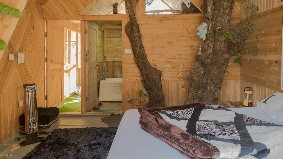 Staying in a tree-house is everyone’s childhood dream, and this dream finds fruition in reality at The Hidden Burrow in Jibhi. Book a room in the tree-house and cozy it up as you sip on a mug of hot chocolate and watch snow flakes descend slowly to cover everything in a blanket of white.